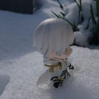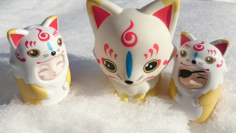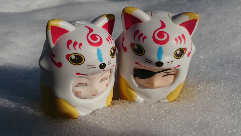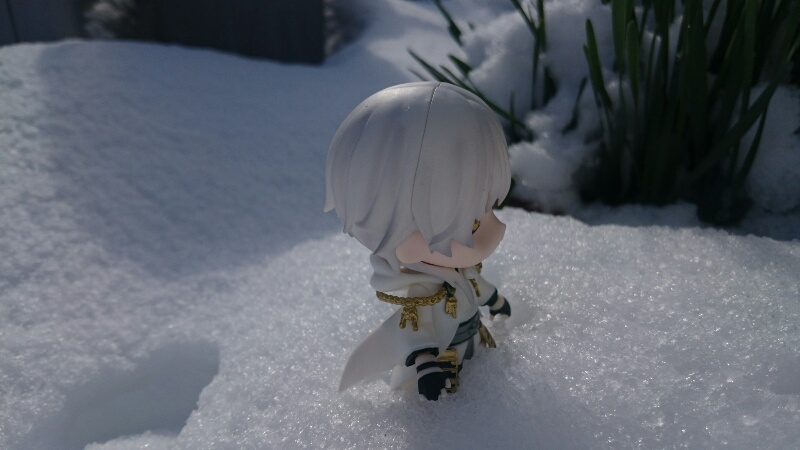 朝起きて日が差していてもまだ溶けていなかった(珍しい)ので、ねんどろ達をお庭に出して撮影会してみました(òωó)ノ