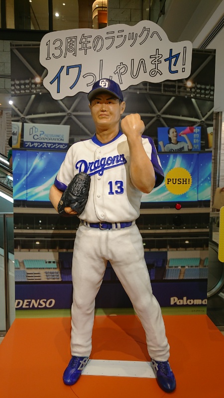 今年の周年記念オブジェは岩瀬だったですね。背番号繋がりですよ